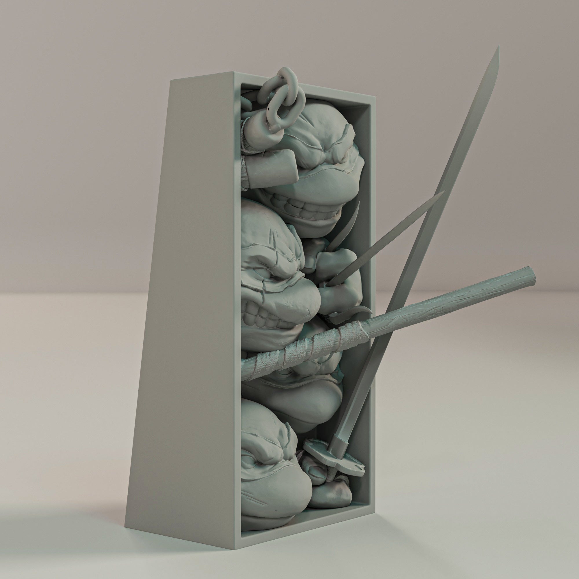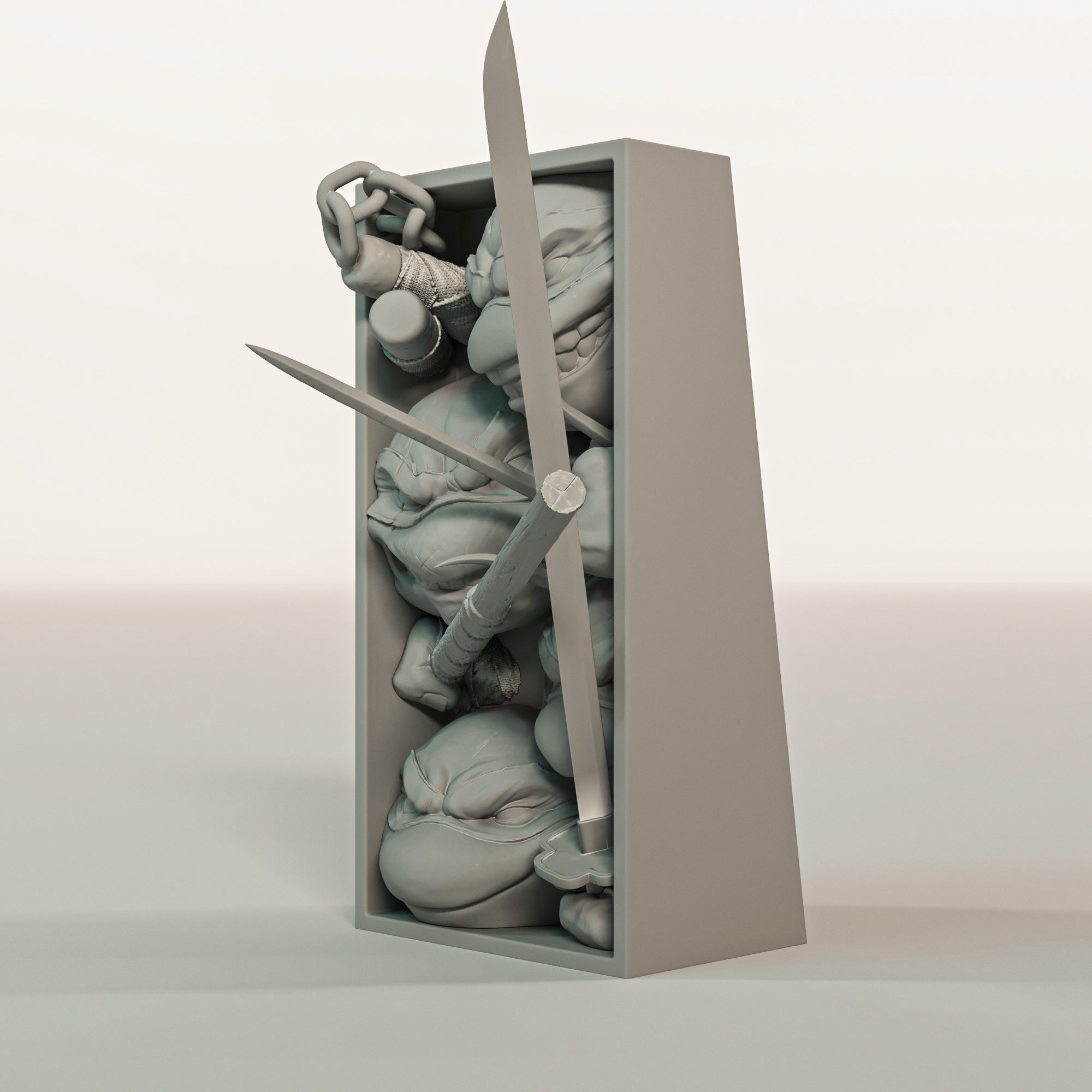 - Split: The box frame and the character models are separated for easier painting.