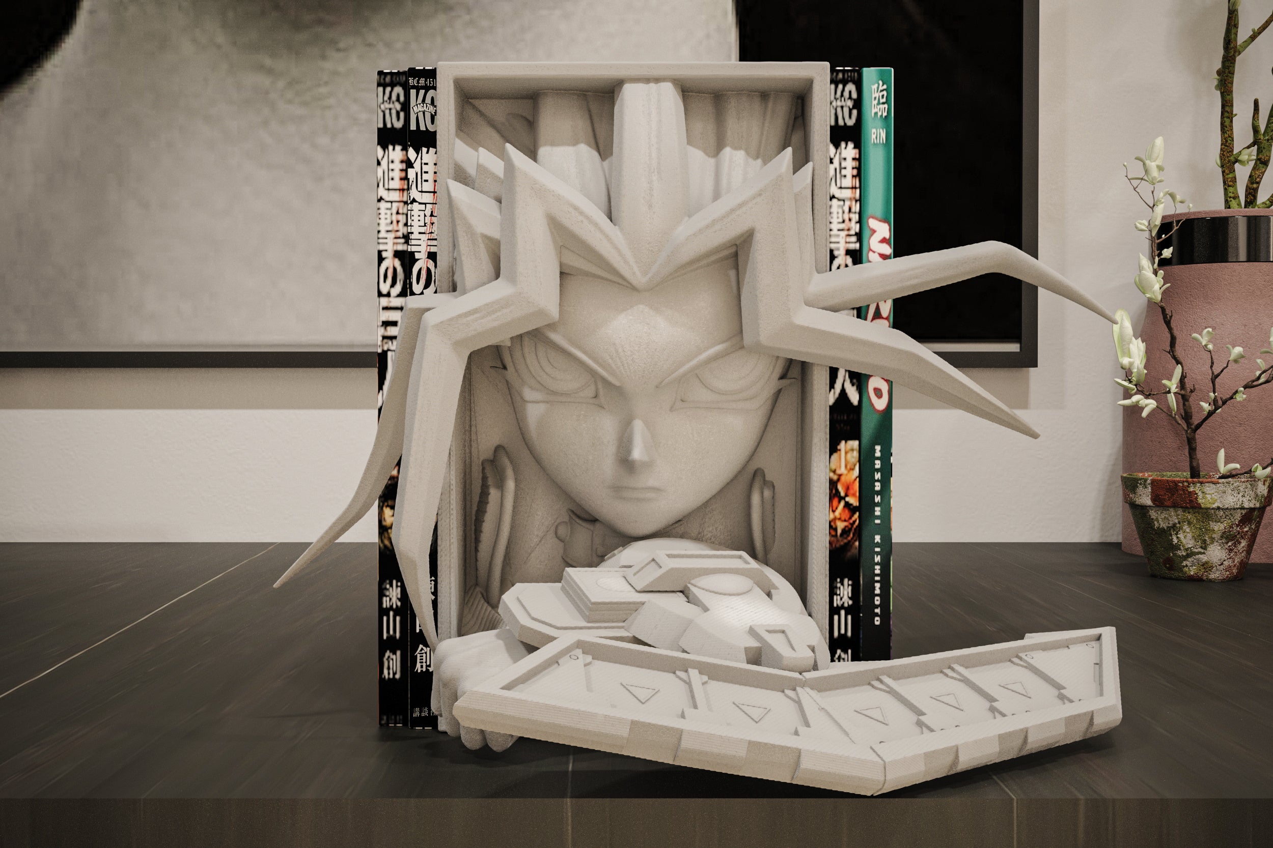 Introducing the Yugi Manga Nook, inspired by the popular character from Yu Gi Oh! Perfect for fans of the series. Get lost in your favorite manga with this fun and functional piece.